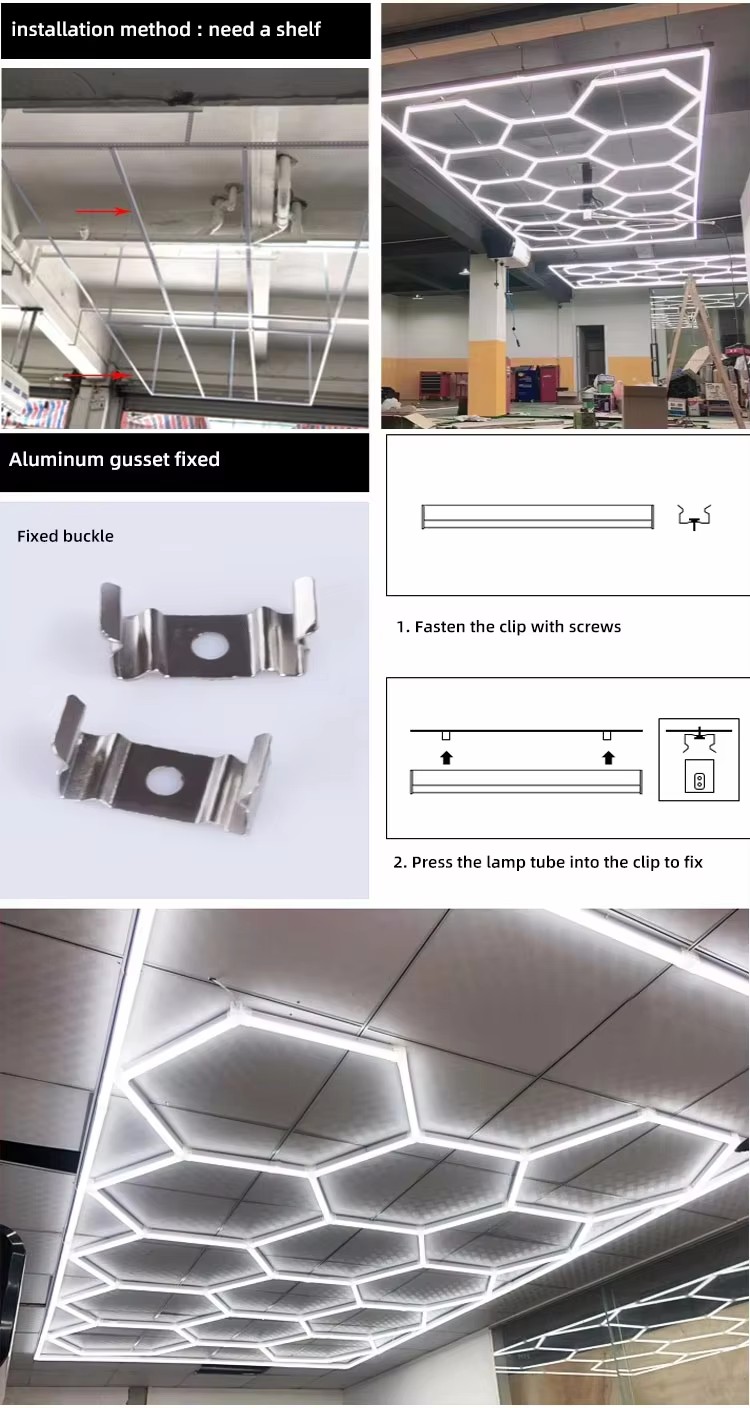 STC202 the Customized LED Workshop Hexagonal Light with the Installation for the Car Detailing and Car Polishing Lights