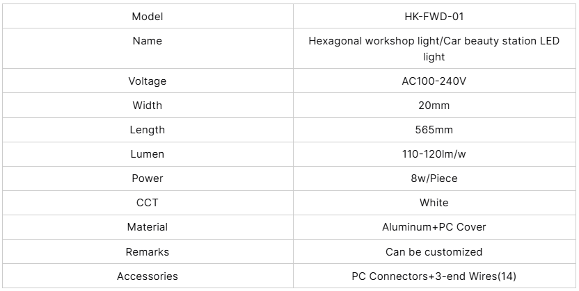 | Product | LED Workshop Hexagonal Light |