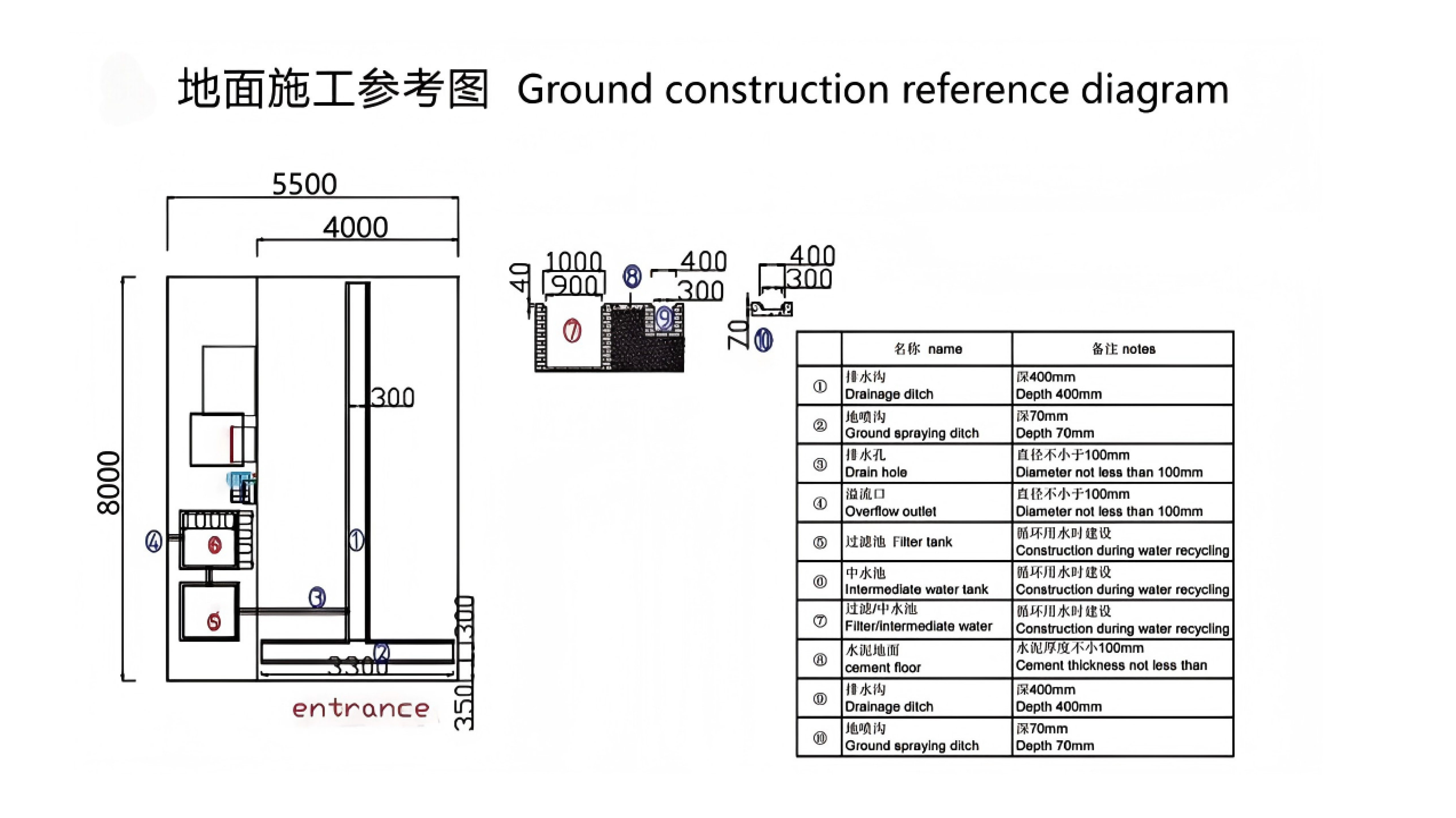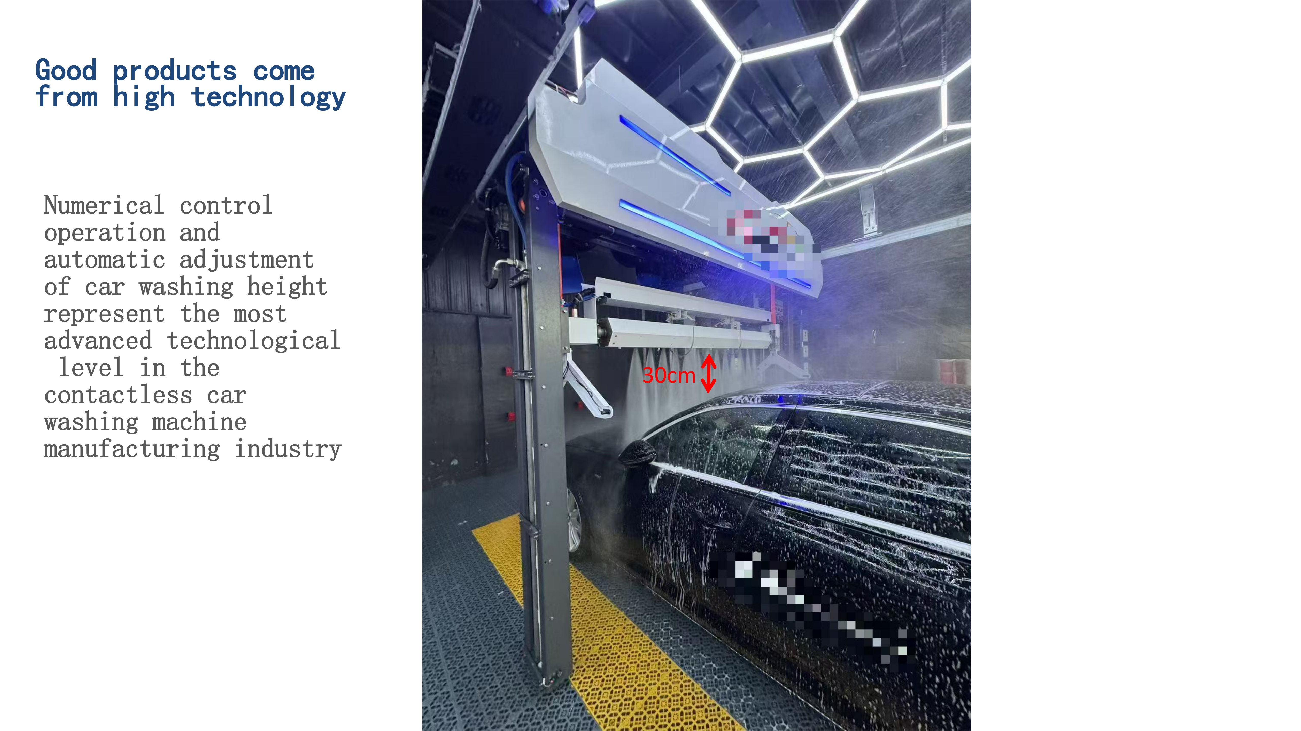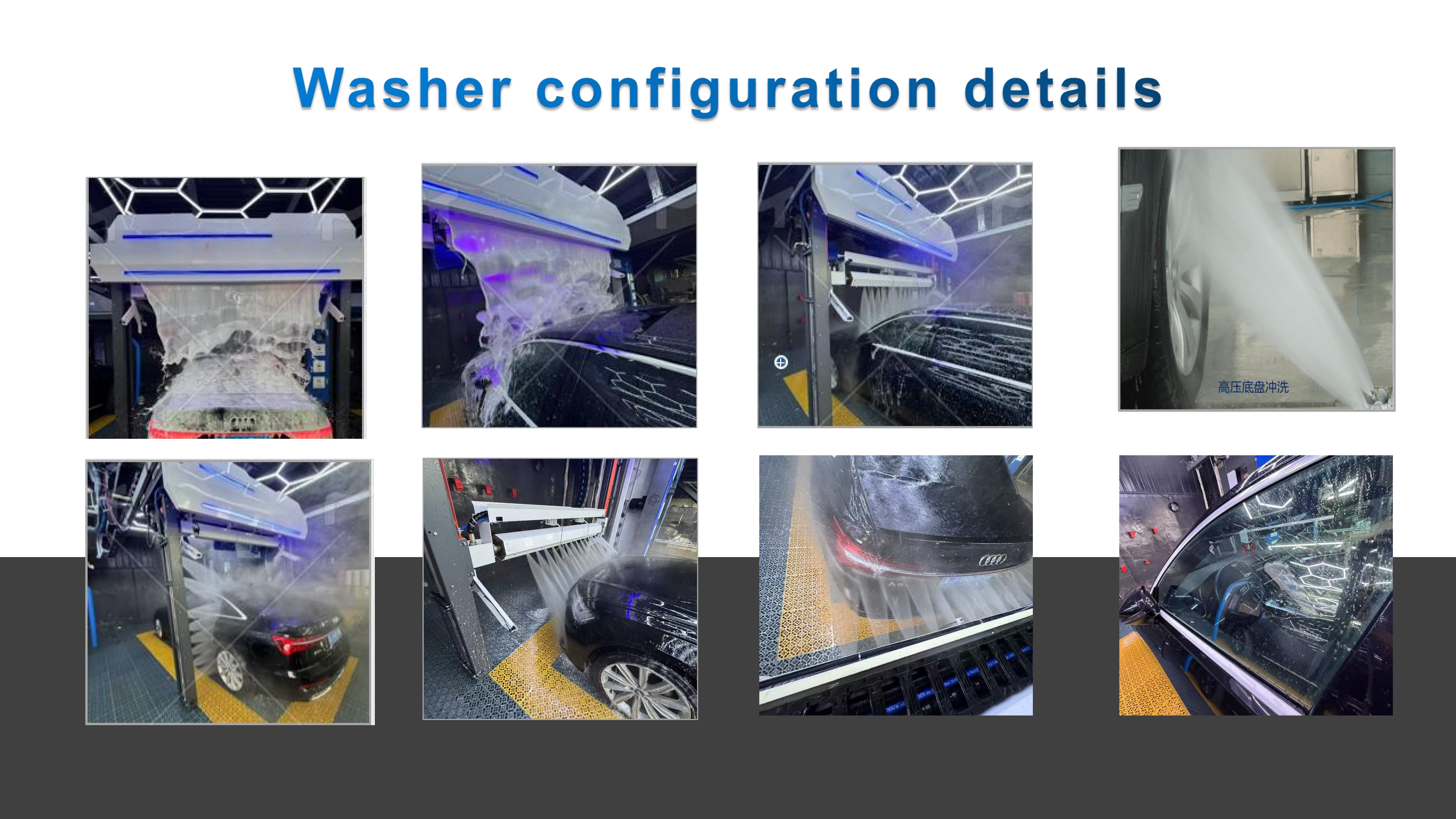 Horizontal high-pressure water jet at the top of the vehicle, low water pressure pre flushing